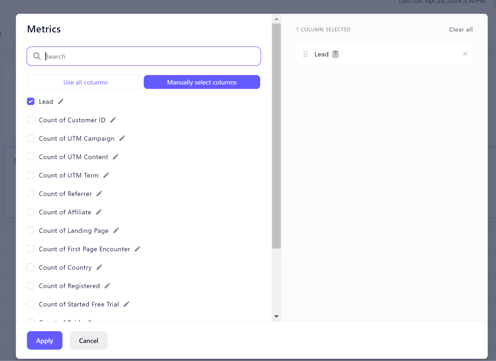 After executing this, click the "Run SQL" button once more. You should now be able to change the column type to Metric without errors.