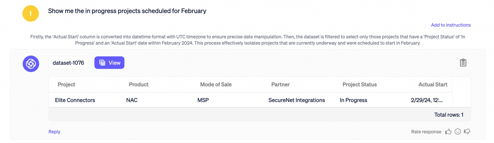 Now, let’s pull the pending projects with the launch date scheduled for February: Show me the in proggres projects scheduled for February
