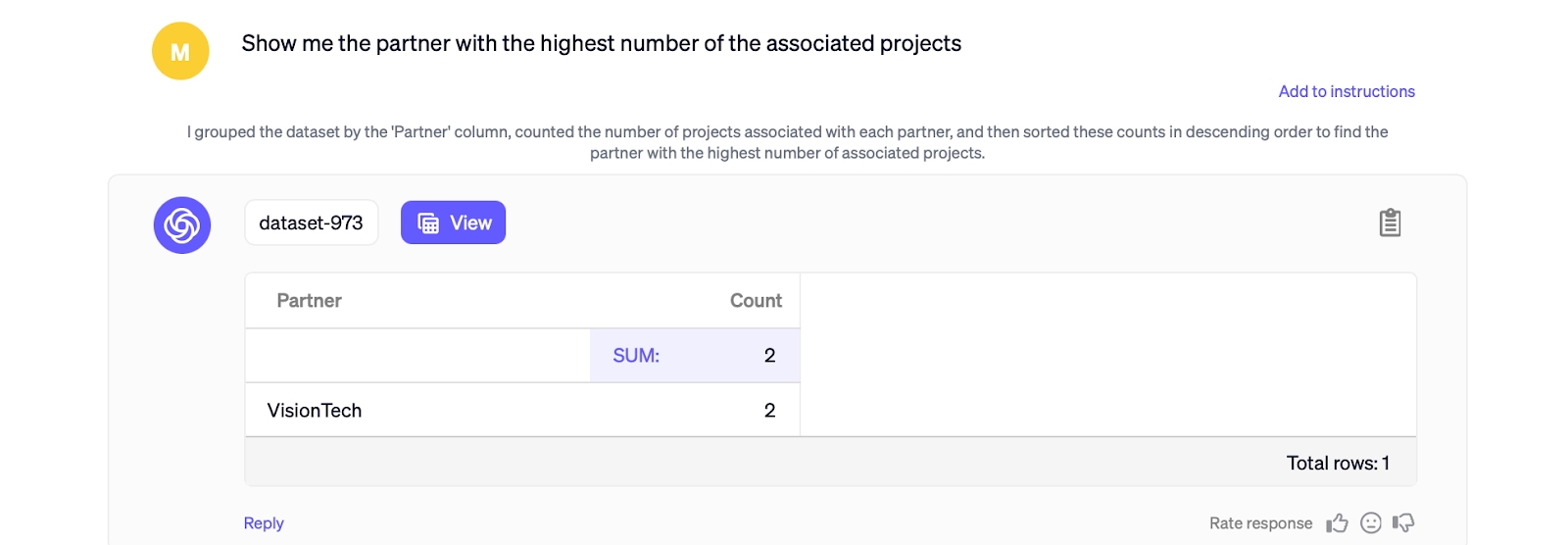 Copilot allows examination of how partners contribute to project success. Let’s identify, who was the most performing partner: